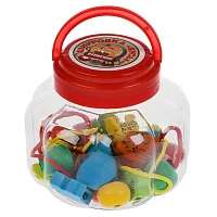 Игрушка деревянная СИНИЙ ТРАКТОР шнуровка-бусы, банка, стикер Буратино
