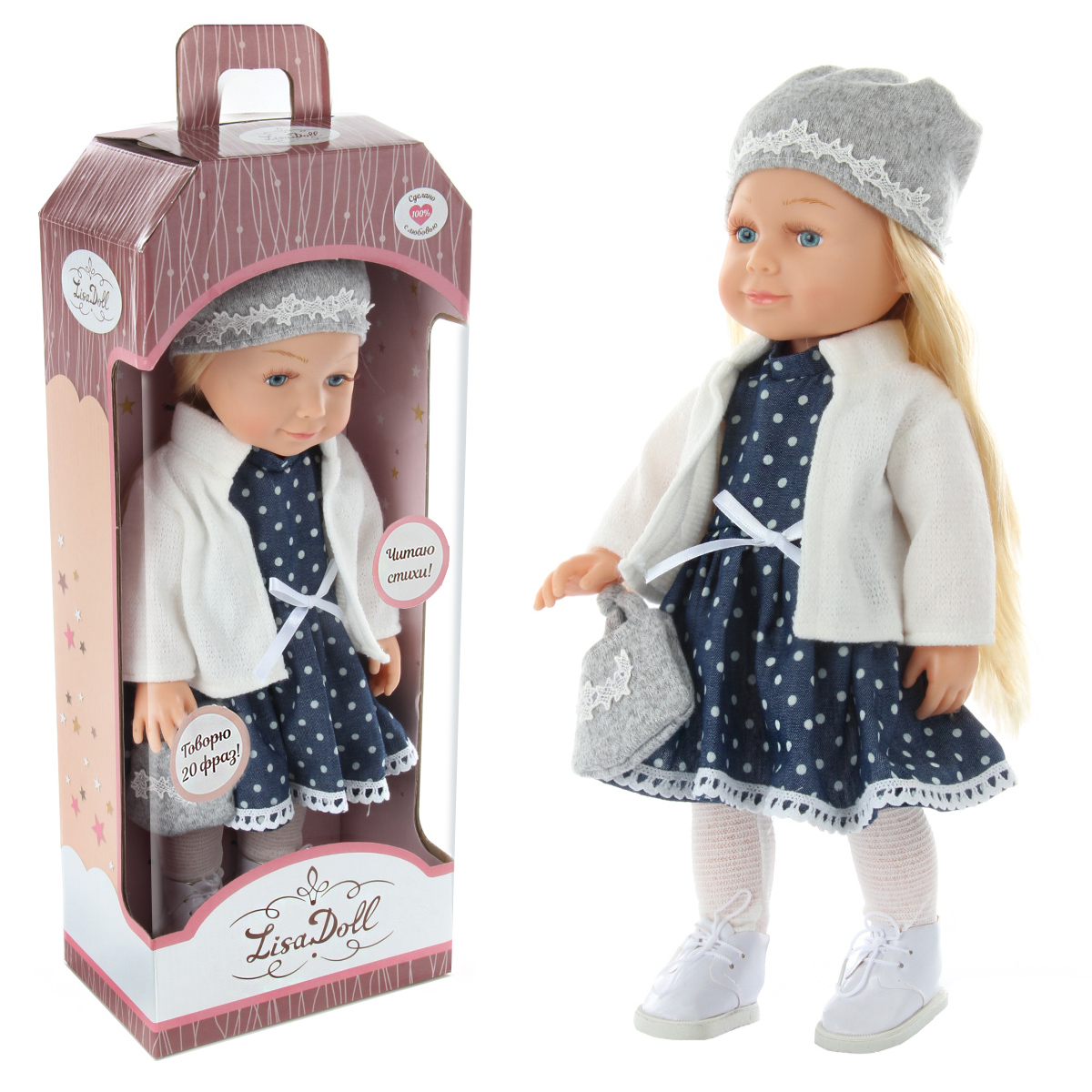 Эта милая и очаровательная куколка покорит сердце любой девочки! Куколка одета в модную одежду, созданную по европейским дизайнам, которая очень ее украшает и создает нежный образ! На голове у куколки шапочка, отделанная красивым узором, на ножках симпатичные ботиночки с колготками, на руке нарядная сумочка. Куколка одета в прелестное платьице, на плечи накинута кофточка. Куколка умеет говорить 20 фраз и читать забавные стихи, достаточно нажать на центр корпуса тела. У игрушки длинные красивые волосы, которые можно заплетать в роскошные косички и делать разнообразные прически! Ручки, ножки и голова куклы двигаются, все части тела мягкие на ощупь, глазки не закрываются. Бровки нарисованы, есть реснички. Голова прошита волосами полностью. У коробки есть удобная ручка, которая позволяет комфортно переносить игрушку. Забота о такой куколке научит ребенка ответственности, улучшит коммуникативные и социальные навыки, позволит придумать множество интересных сюжетно-ролевых игр, развивая фантазию! Эта куколка - великолепный подарок для девочки, с которым она проведет немало веселых и занимательных часов игры! Игрушка работает от 3 батареек LR44, входят в комплект. Изготовлена из безопасного и высококачественного винила, аксессуары сшиты из ткани. Размеры куколки: 17*9,5*37 см. Размеры коробки: 17,5*11*44,5 см.