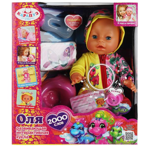 Пупс озвученный Шаинский музыка Оля 35см, пьет, пис, закр глаза, 2000 слов, 4 акс КАРАПУЗ