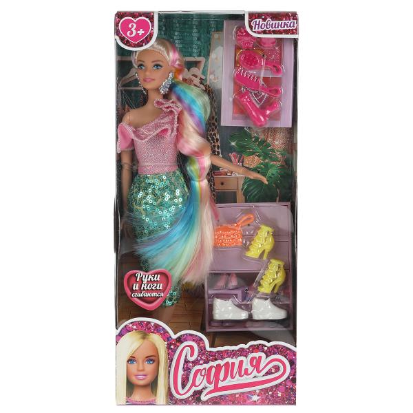 Кукла 29 см София, радужные волосы, с акс, руки и ноги сгибаются в кор КАРАПУЗ