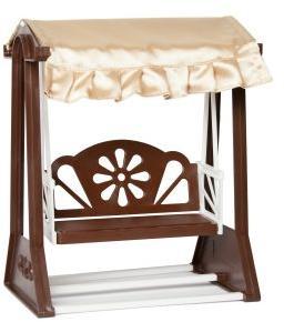 Если у Вашей девочки есть много кукол и пупсов и она любит с ними играть, то ей понравятся качели. Игрушка оформлена под дерево, имеет мягкий тканевый полог приятного бежевого цвета. Благодаря классическому стилю исполнения качели впишутся в интерьер любого кукольного домика. На качелях можно покачать куклу высотой не более 20 сантиметров. Тканевый полог при необходимости можно легко снять и постирать или почистить.
