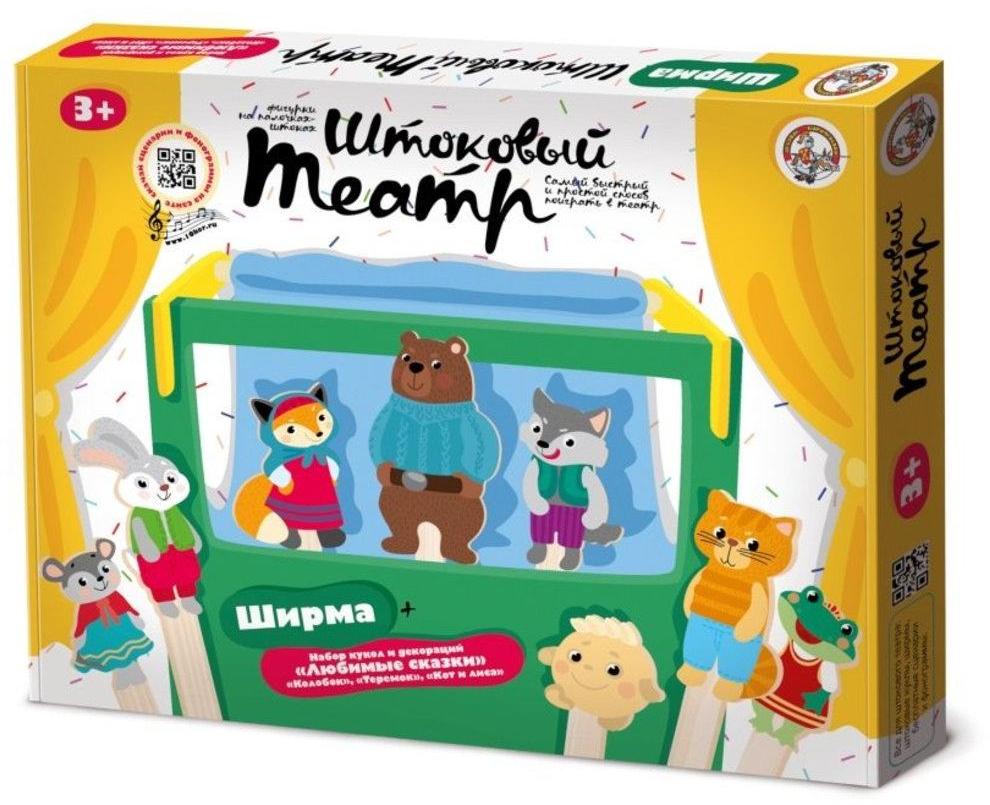 Кукольный театр Любимые сказки Колобок, Теремок, Кот и лиса штоковый с ширмой