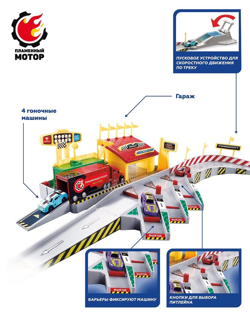 Трек Пит-стоп, 4 машины, пусковое устройство, 3 кнопки для выбора питлейна