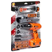 Набор строительных инструментов Bondibon "Папины дети", 12 предметов (электродрель) CRD 38x28x6см.