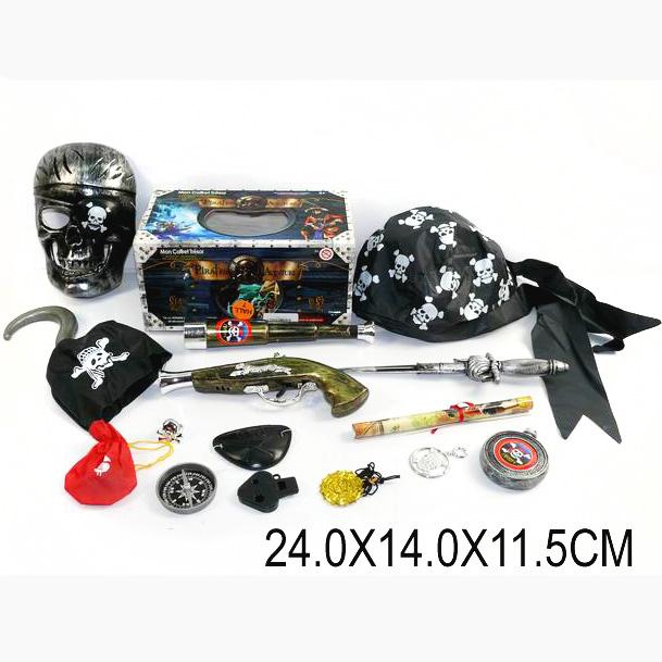 Игровой набор пирата с сундуком - это настоящий набор для подвигов, который позволяет почувствовать себя пиратом. В набор входят: крюк, бандана, наглазник и многое другое. Все аксессуары выглядят совсем как настоящие. С таким замечательным набором можно играть с друзьями в сюжетно-ролевые игры, либо нарядиться на карнавал и покорить всех своим внешним видом.
