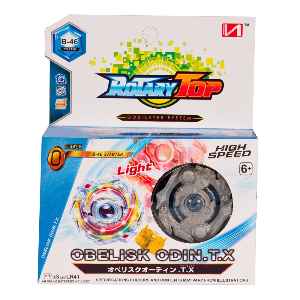 Игрушка – аналог Bey Blade. Материал, из которого изготовлен волчок – пластик. Волчок состоит из трёх деталей. Верхняя бывает 4 видов в зависимости от того, какая особенность в ней преобладает: выносливость, атака, баланс, защита. Центральная деталь различается по весу и форме и регулирует центр тяжести. Основание волчка влияет на то, как он будет вращаться. Комбинируя различные верхние, центральные детали и основания, можно каждый раз создавать уникальный волчок, подходящий для борьбы с определенным противником. Поэтому, чем больше волчков будет в коллекции, тем больше комбинаций можно составить, и тем больше шансов выиграть. Игра проводится на игровом поле и ее цель – вытолкнуть волчок соперника из него. Комплектность: верхняя часть волчка, основание, волчок, пусковое устройство, наклейки.Комплектность: верхняя часть волчка, основание, волчок, пусковое устройство, наклейки. У волчка есть функция света.