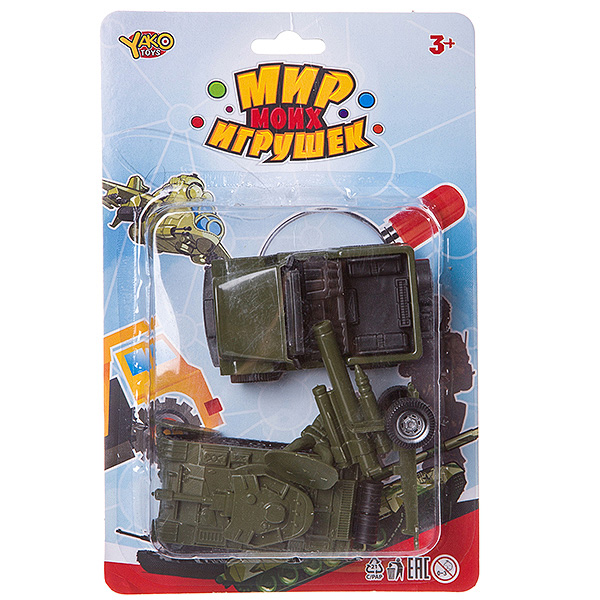 Набор пластм. "Армия", 5 предметов, танк и машина инерционные, пушка - без механизма, CRD 24x16 см,