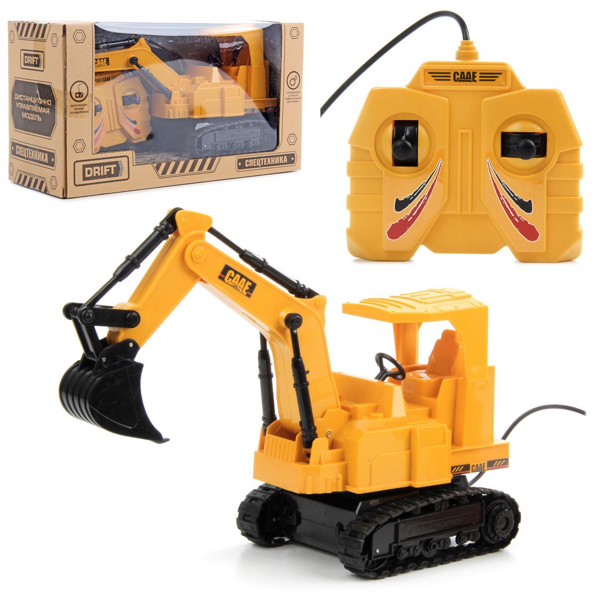 Высокая детализация проработки, реалистичный дизайн и яркий цвет сделают эту игрушку любимицей ребенка. С ней малыш обязательно придумает огромное количество веселых забав, ведь у игрушки так много подвижных деталей и элементов. В комплект входят гусеничный экскаватор с пультом управления, соединенные друг с другом проводом. Экскаватор ездит вперед и назад, при движении назад он поворачивает направо. Если передвинуть рычажок на пульте управления вправо-влево, экскаватор начнет копать, походя на своего большого собрата - стрела с ковшом станет подниматься и опускаться, ковш будет совершать движения, пытаясь захватить землю. Если передвинуть рычажок управления влево - экскаватор копает, если вправо - экскаватор совершает те же действия, что и при копании, только ковш ходит в обратную сторону. Ковш поднимается и опускается вручную, руль прокручивается вокруг своей оси в обе стороны. Гусеницы снимаются, экскаватор может кататься как на гусеницах, так и на колесах, если снять гусеницы. Кабина крутится вручную в обе стороны с потрескивающим звуком. С такой интересной и потрясающей игрушкой малыш никогда не заскучает. Игрушка отлично тренирует мелкую моторику рук, координацию движений, логическое и пространственное мышление, воображение. Соберите всю коллекцию машинок спецтехники, с которой ребенок проведет множество увлекательных часов игры. Пульт управления работает от 3 батареек АА, не входят в комплект. Игрушка изготовлена из высококачественной и безопасной пластмассы. Масштаб экскаватора 1:36. Размеры экскаватора: 24,5*10*14 см. Высота экскаватора с поднятой стрелой: 19 см. Размеры пульта управления: 9,5*5*8,5 см. Размеры коробки: 28*11,5*15,5 см.