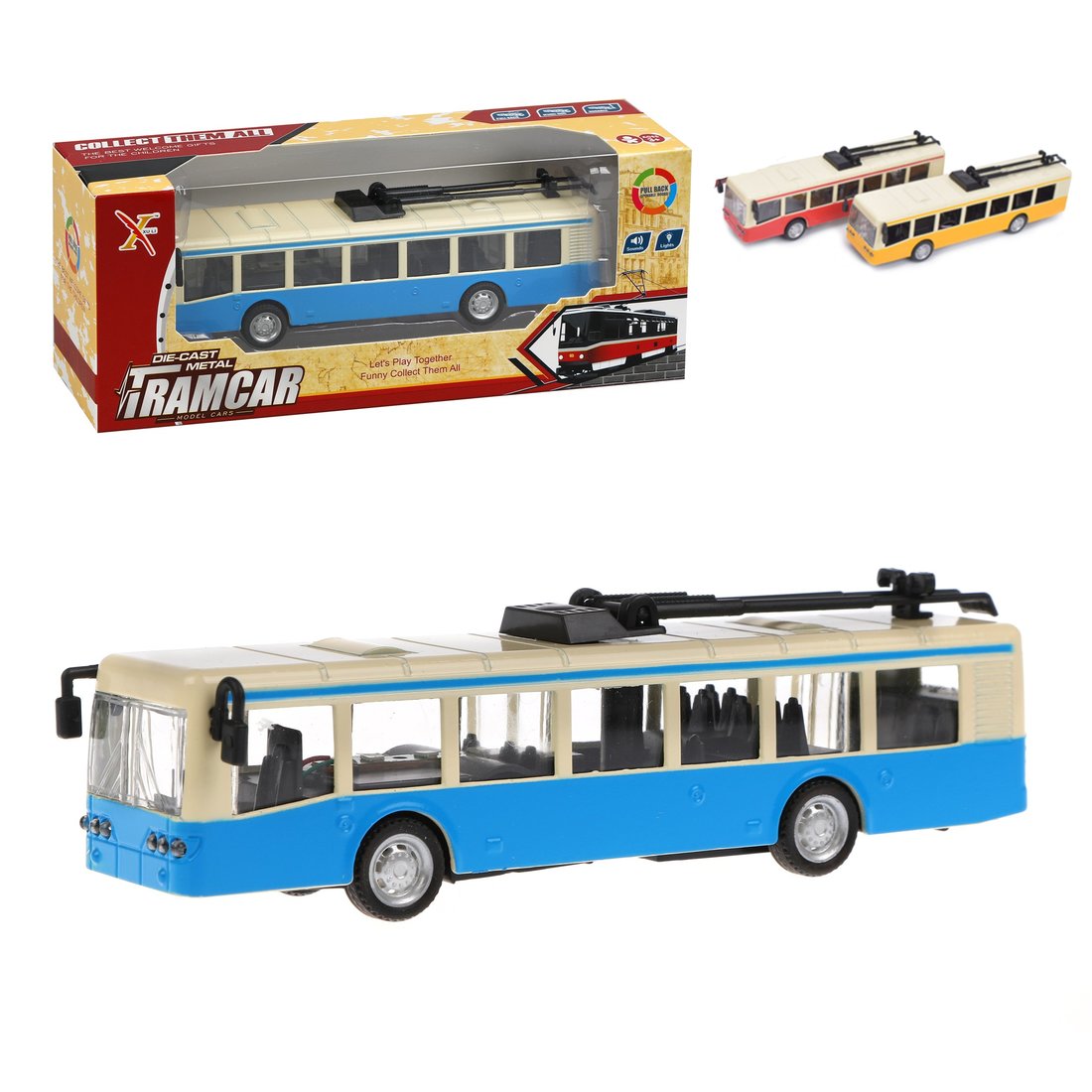 Троллейбус металлический, инерционный, свет, звук, тестовые элементы питания AG13*3шт. входят в комплект, коробка