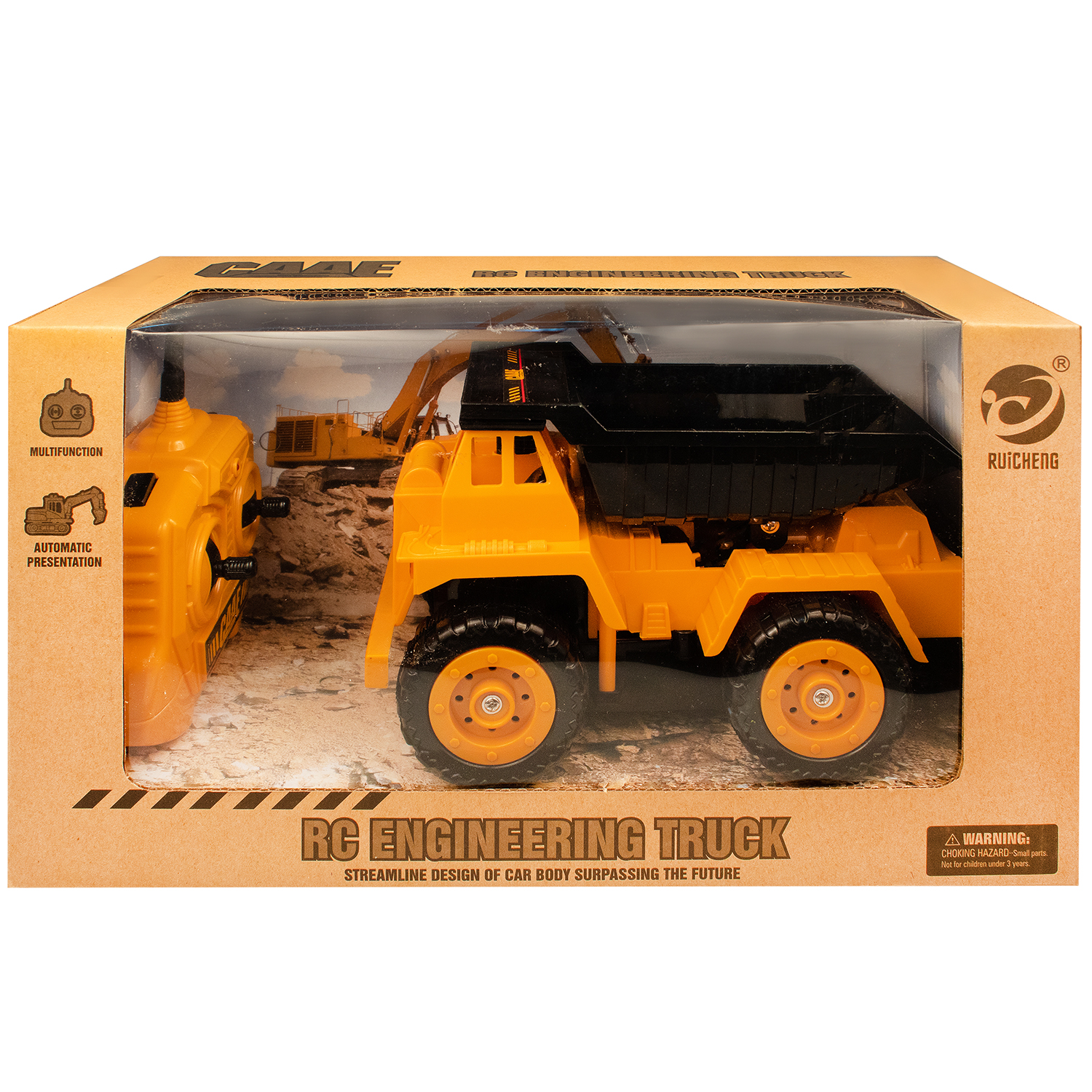 Самосвал на радиоуправлении размером 18,6*11*17 см. Игрушка выполнена из высококачественного пластика. Функционал: движение вперед-назад-вправо-влево; вращение влево и вправо; подвижный кузов; демо-режим. Игрушка развивает скорость до 6 км/ч. Комплектность: самосвал, пульт управления. Для работы игрушки необходимы 3 батарейки ААА для игрушки (в комплект не входят) и 2 батарейки ААА для пульта управления (в комплект не входят). Частота, на которой работает изделие – 2,4 ГГц. Длительность работы игрушки составляет до 15 минут. Дальность управления – до 32 метров.