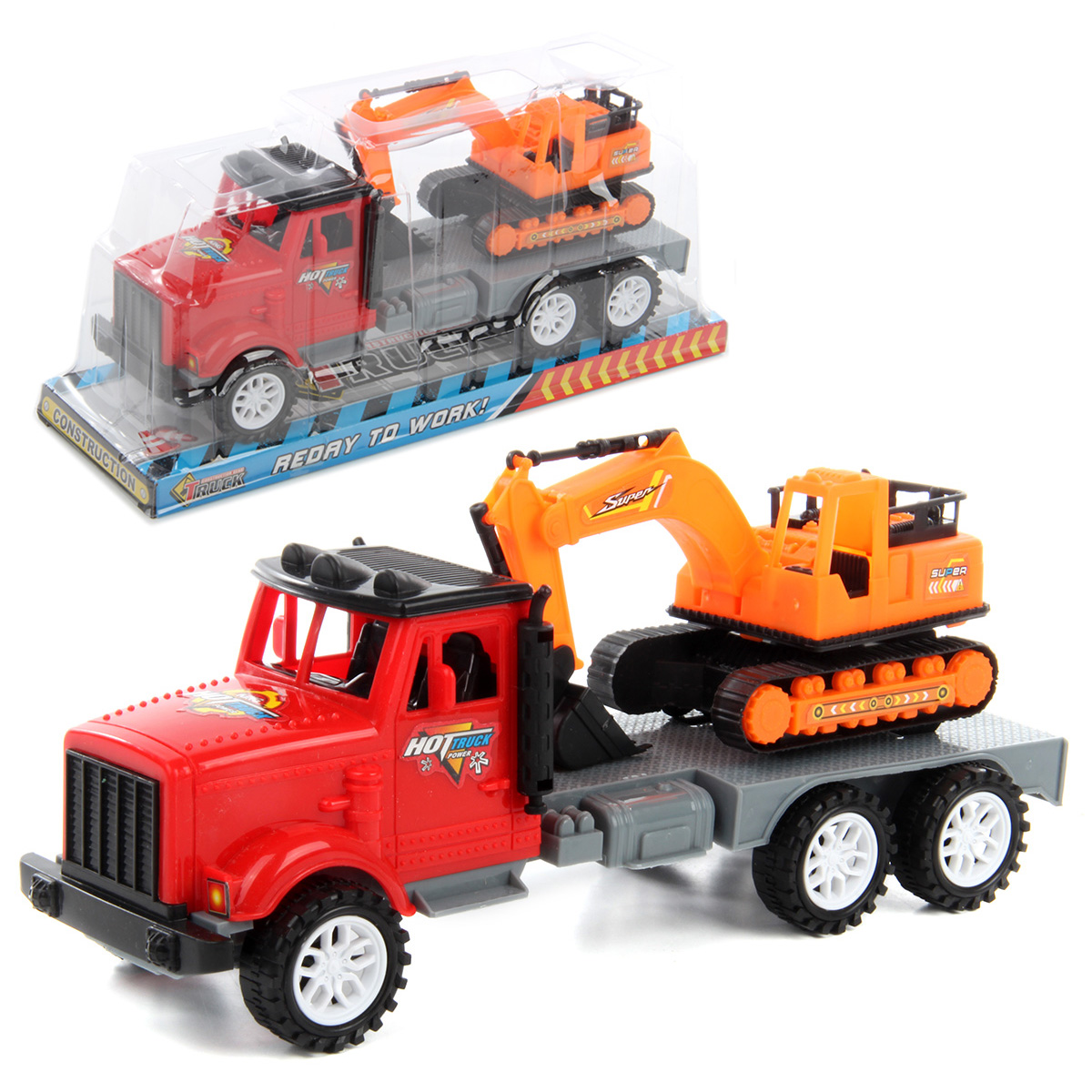 Машина инерционная, Автовоз с эскаватором, 33х11х15, коробка