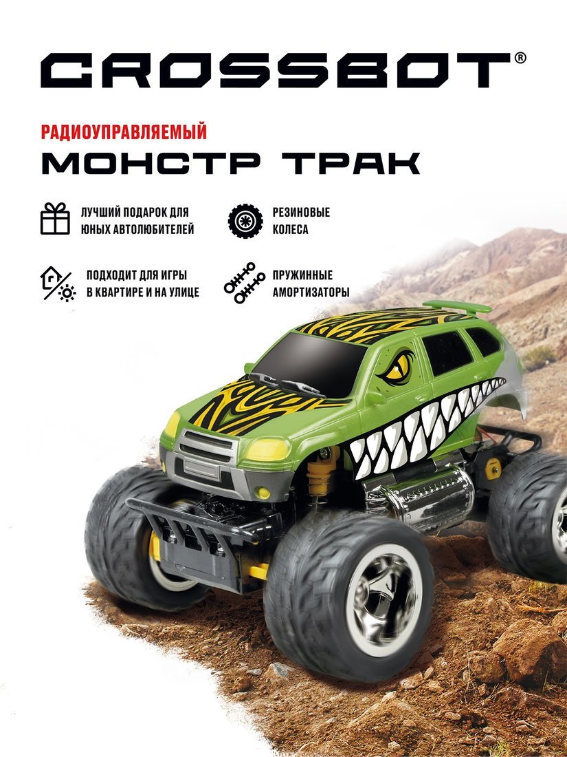 Джип на радиоуправлении Монстр трак Динозавр, аккумулятор, зеленый