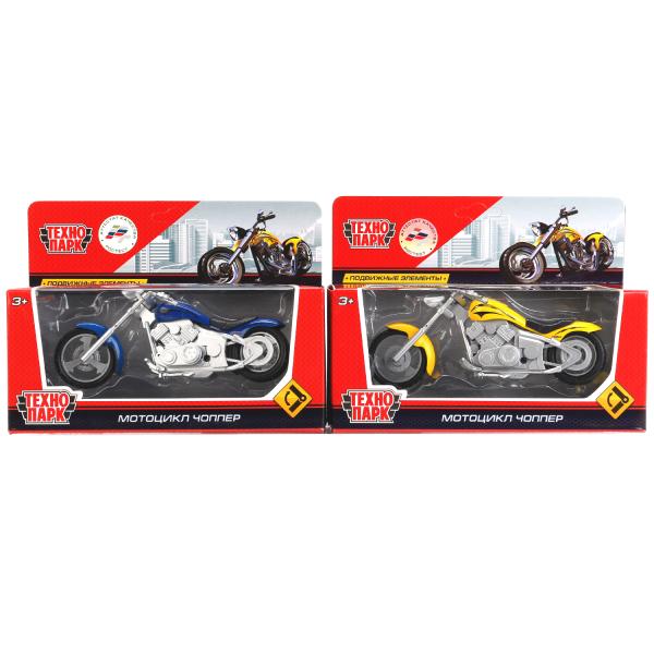 Модель металлическая МОТОЦИКЛ ЧОППЕР 14,5 см, руль, выстав. подножка, кор. Технопарк