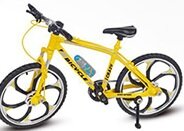 Велосипед металлический 1:10, подвиж. эл. руль, колеса, педали, подножка, цв. желтый, кор., 22X16X7,5