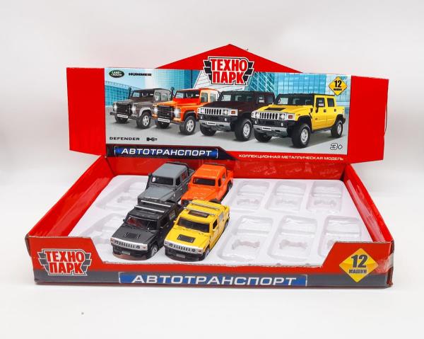 Машина металл land ROVER DEFENDER/HUMMER H2 PICKUP 12см,дв,баг,асс,дис. Технопарк