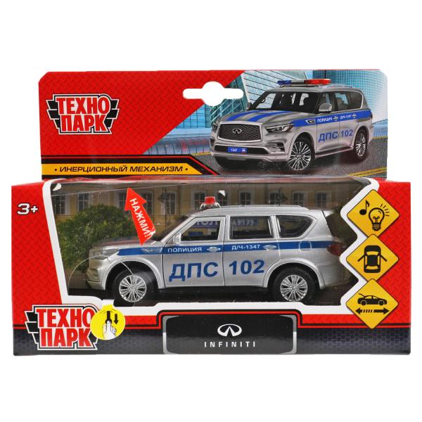 Машина металл свет-звук INFINITI QX80 ПОЛИЦИЯ 12 см, двер, багаж, инер, Технопарк