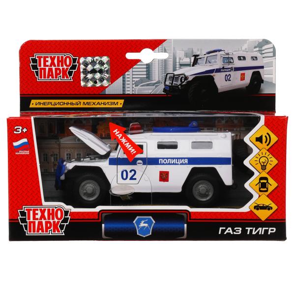 Машина металл свет-звук ГАЗ ТИГР ПОЛИЦИЯ, 13,7см, двери, кап.,люк,инер.,Технопарк