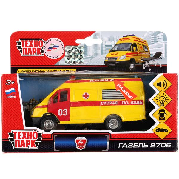 Машина металл свет-звук ГАЗЕЛЬ СКОРАЯ, 13 см, дв., багаж., инерц., кор. Технопарк