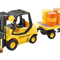 Погрузчик вилочный с прицепом и бочками 1:16, свет, звук, фрикция