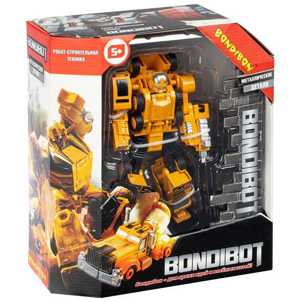 Чем порадовать маленького мальчика? Разумное решение робот – трансформер с металлическими деталями "BONDIBOT 2в1" - он покорил сердца всех мальчишек на планете! Проявив смекалку, ребенок сможет самостоятельно собирать и разбирать сколько угодно раз робота, превращая его в автомобильный кран. В процессе игры ребенок развивает мелкую моторику, пространственное и образное мышление и тренирует воображение. Игрушка упакована в информативную коробку с демонстрационным окошком, размер коробки 9,5х24,5х21,5 см.