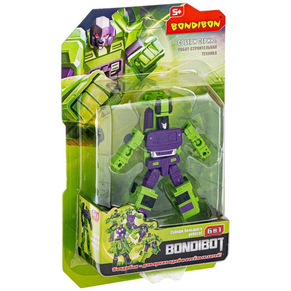 Чем порадовать маленького мальчика? Разумное решение робот – трансформер "BONDIBOT 2в1" - он покорил сердца всех мальчишек на планете! Проявив смекалку, ребенок сможет самостоятельно собирать и разбирать сколько угодно раз робота, превращая его в бетономешалку. В процессе игры ребенок развивает мелкую моторику, пространственное и образное мышление и тренирует воображение. Красочная упаковка с описанием механизма трансформации на листе с европодвесом, размер упаковки 13х4,5х21 см.