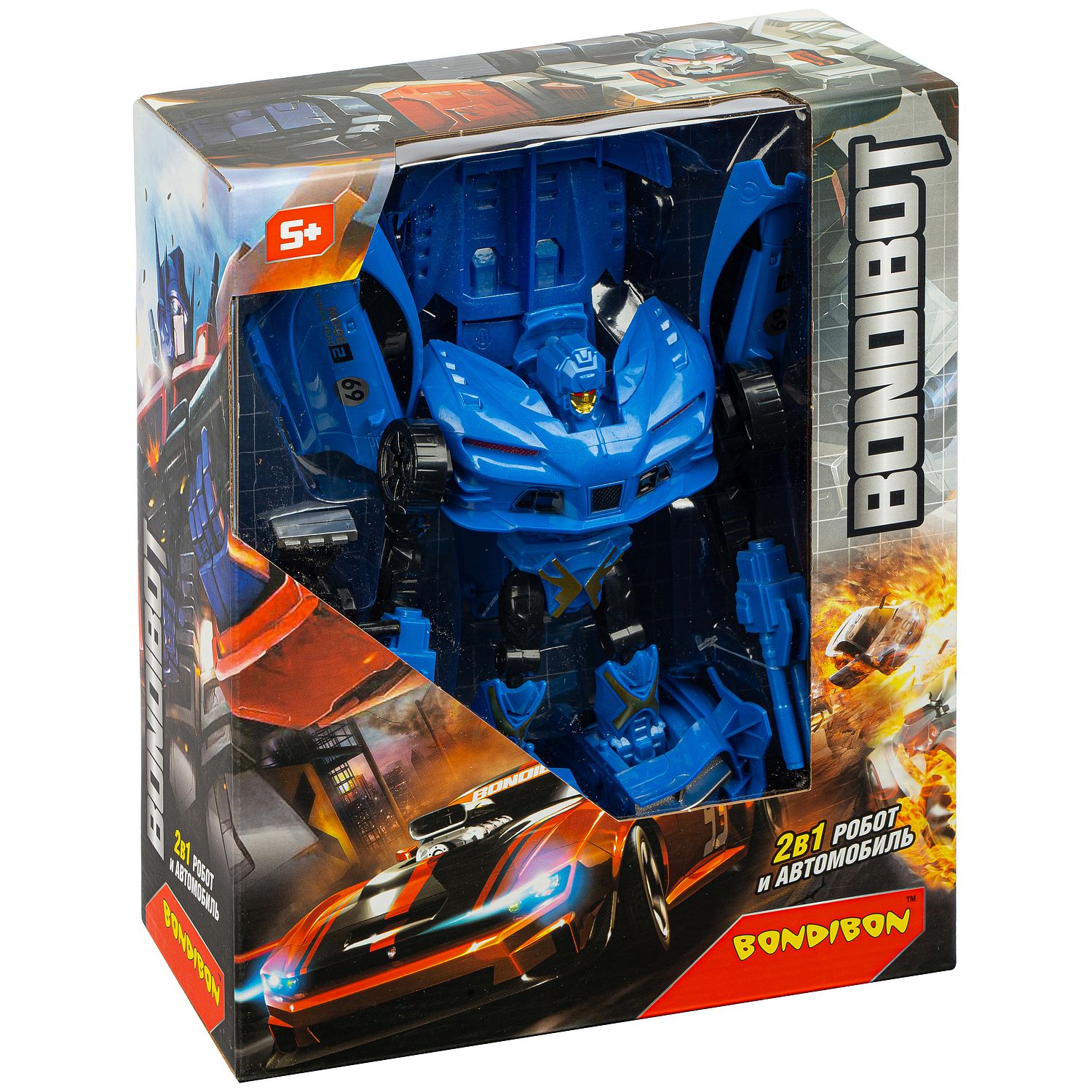 Чем порадовать маленького мальчика? Разумное решение робот трансформер BONDIBOT 2в1 - он покорил сердца всех мальчишек на планете! Проявив смекалку, ребенок сможет самостоятельно собирать и разбирать сколько угодно раз робота, превращая его в фантастический синий автомобиль. В процессе игры ребенок развивает мелкую моторику, пространственное и образное мышление и тренирует воображение. Красочная коробка с подробным описанием механизма трансформации каждой модели имеет защищенное пленкой демонстрационное окно, размер упаковки 22,5x27,5х10 см, размеры робота 18 см х 20 см, размеры автомобиля 20 см х 7,8 см х 5,5 см.