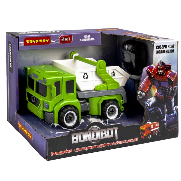 Трансформер-конструктор с отвёрткой, 2 в 1 BONDIBOT Bondibon, контейнерн. мусоровоз-робот