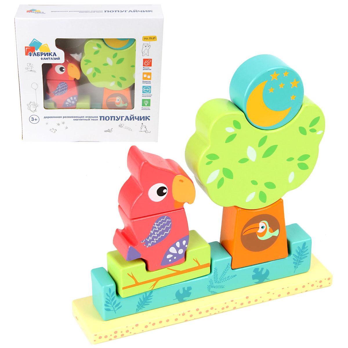 Деревянная игрушка-магнитный пазл "Попугайчик"