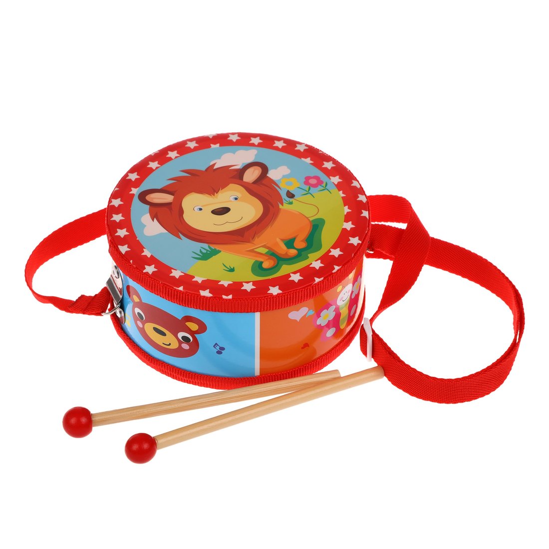 Весёлая музыкальная игрушка «Барабан» обязательно понравится ребёнку! Она выполнена из натурального материала и тщательно отшлифована, полностью безопасна для здоровья ребёнка. На лицевой стороне барабана имеется красочное изображение львёнка. В комплекте прилагаются 2 палочки с круглыми наконечниками. Игрушки, издающие различные звуки, оказывают благоприятное воздействие на развитие детского слуха, памяти и воображения. Диаметр барабана составляет 15 см. Изделие изготовлено из натурального дерева с элементами текстильных материалов. Рекомендованный возраст: 3 года +