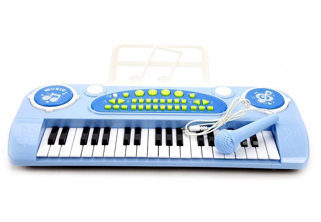 Синтезатор голубой, 37 клавиш, микрофон, запись, инструкция