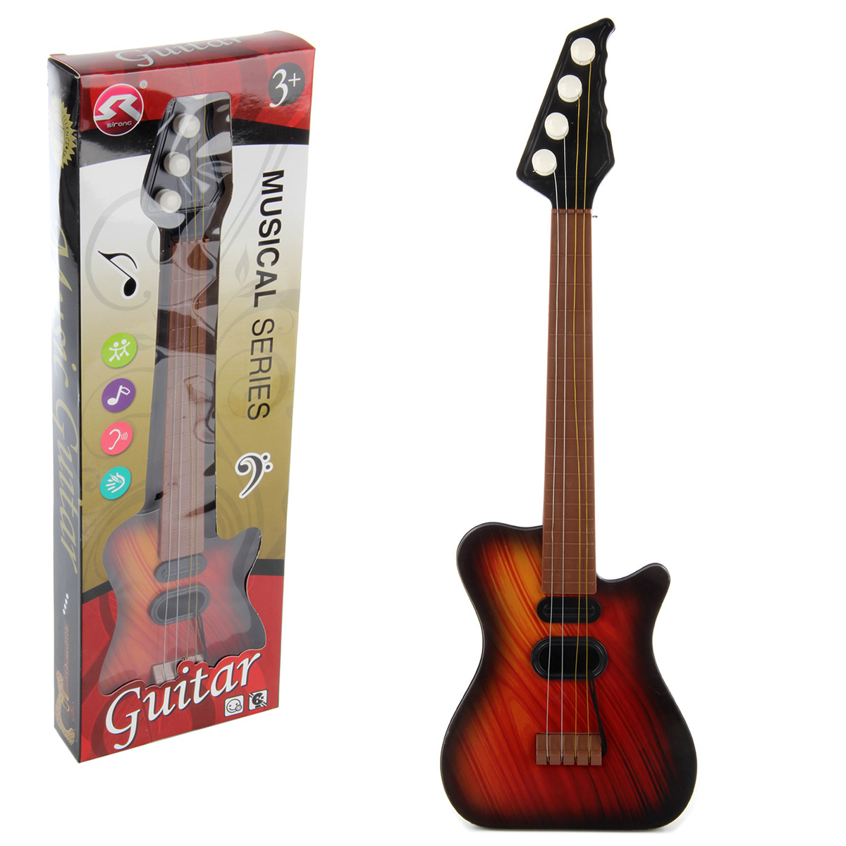Лучший друг маленького музыканта и меломана - гитара. Подтягивая колки, можно настраивать инструмент. Играть на нем следует, как на обычной гитаре, будет издавать соответствующие звуки. Есть медиатор на веревочке. Гитара отличается реалистичным дизайном и красивой расцветкой. Игрушка развивает артистические способности ребенка, музыкальный слух, зрительное восприятие, внимание, память, мелкую моторику рук и координацию движений. Гитара станет хорошим подарком. Игрушка изготовлена из качественного и безопасного полимерного материала. Размеры гитары: 41*14*4 см. Размеры коробки: 42*4*14 см.