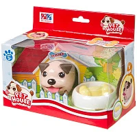 Игрушка щенок пласт. на бат., ходит, с миской и косточкой., арт.606