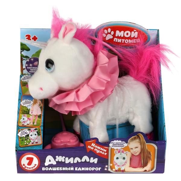 Интерактивный единорог Джилли 22см ходит,на поводке, Со светом МОЙ ПИТОМЕЦ