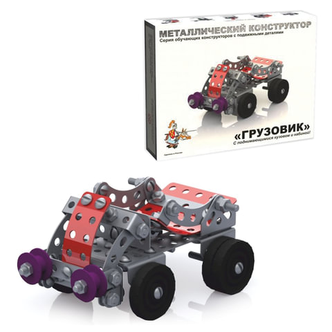 Металлический конструктор с подвижными деталями «Грузовик» та модель, которая понравится ребенку. Познавательная игра, помогающая детям в освоении основ конструирования. Подходит для детских учебных заведений.