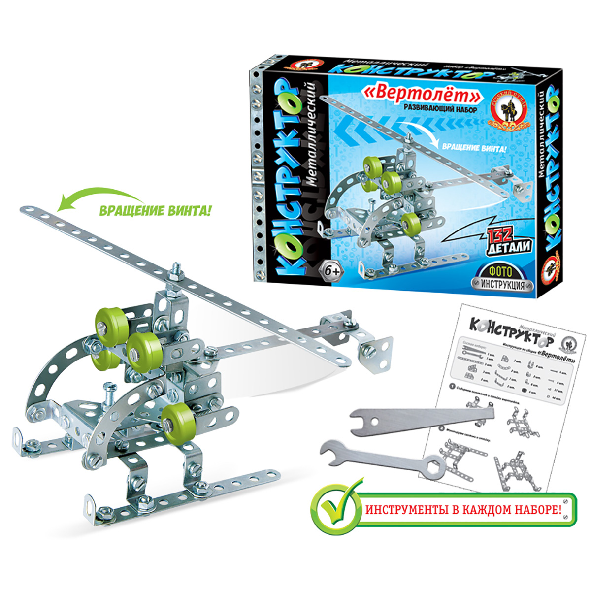 Арт.05070 Металлический конструктор «Вертолёт» (132 детали)