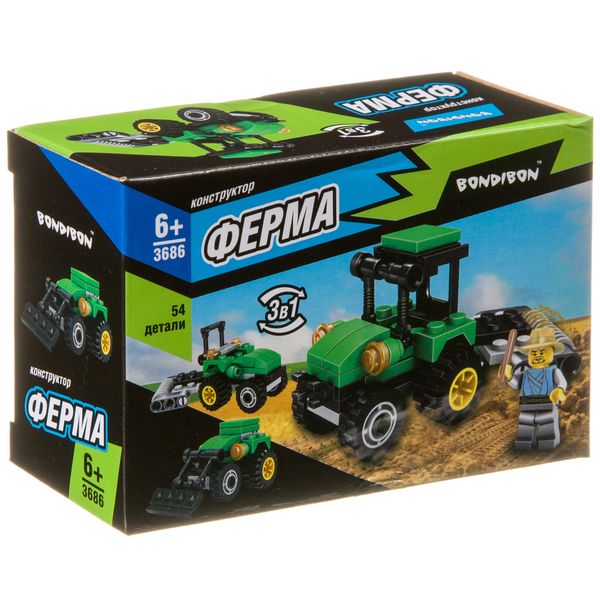 Конструктор Bondibon, Ферма, Трактор, 54 дет., 3 в 1. ВВ3686
