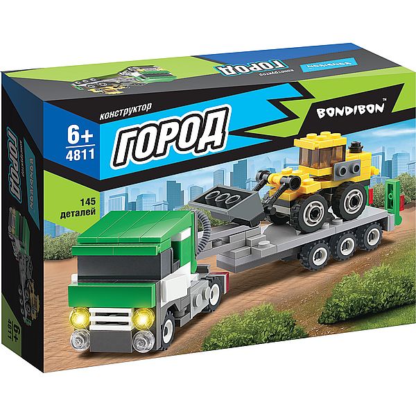 Конструктор Bondibon, Город, Тягач с платформой и бульдозер, 145 деталей