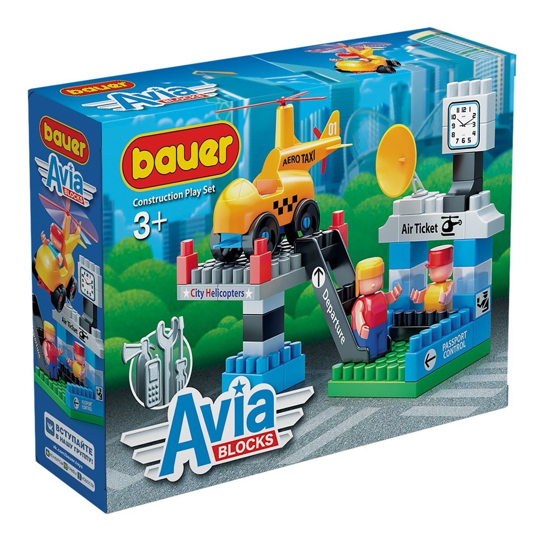 Тематическая серия конструкторов из пластика, посвященная авиации. Из деталей наборов можно построить целый аэропорт со взлетно-посадочными полосами, авиакассами, ремонтным центром и огромным авиапарком. А входящие в комплект наклейки и новые детали делают игру еще интереснее. Наборы предназначены для детей от 3-х лет, сочетаются с наборами других серий от Bauer. В комплекте: разноцветные кубики разных размеров,краны, лестницы, фигурки человечков, элементы декора (наклейки, радары, заборы, деревья, окна, двери, крыши), сборные мишинки и самолеты, набор инструментов, детали для сборки дороги/взлетной полосы.