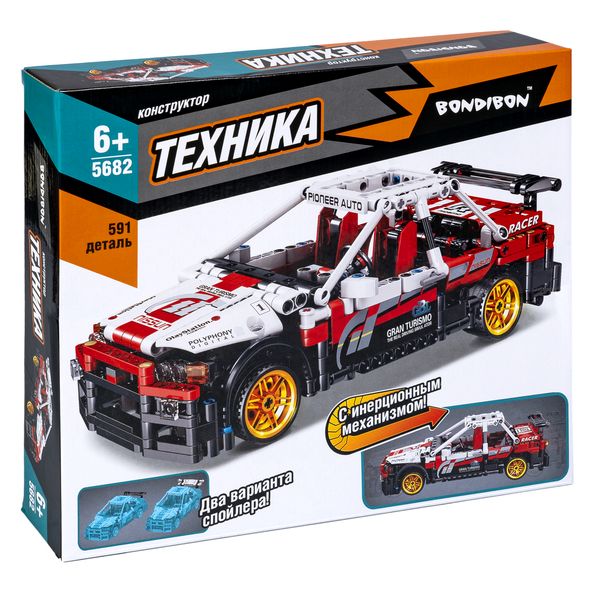 Конструктор Bondibon, ТЕХНИКА, Гоночная машина, инерция, бело-красная, 591 деталь