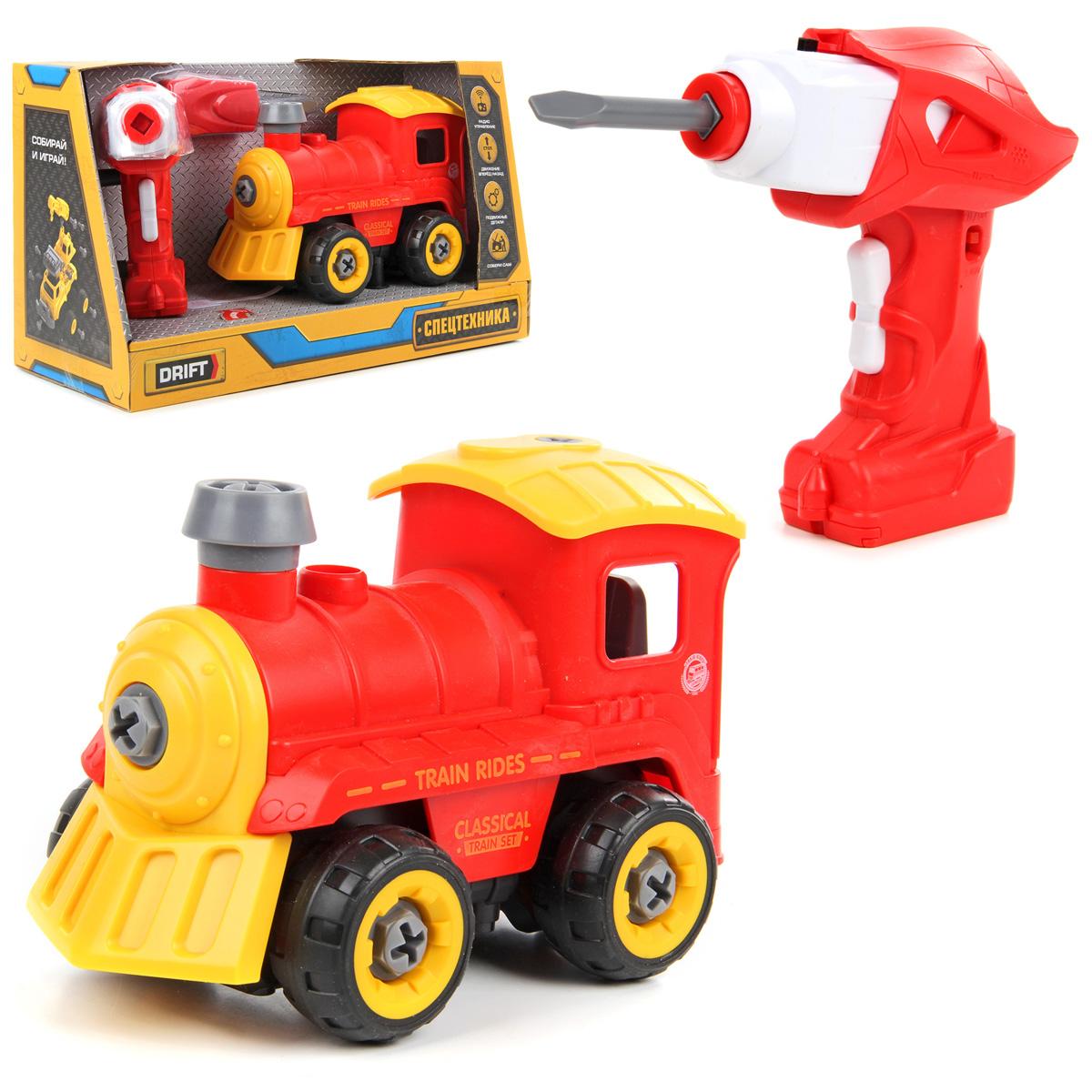 Полезный и занимательный подарок для всех юных любителей конструкторов - разбирающаяся игрушка. Этот яркий локомотивчик привлекает внимание интересным исполнением и функциональностью. В комплект входят локомотивчик, крестовая ручная отвертка, шуруповерт, шлицевая насадка и инструкция по сборке. У шуруповерта вынимается отсек с батарейками в верхней части, если вставить отсек с батарейками в локомотивчик, локомотивчик будет кататься вперед и назад, локомотивчик переднеприводный, шины жесткие. Переключать режимы направления движения можно вручную с помощью рычажка на отсеке с батарейками. Чтобы управлять локомотивчиком дистанционно с помощью шуруповерта вставьте отсек с батарейками в локомотивчик, перейдите в режим R\C, сдвинув рычажок, вставьте батарейки в основание шуруповерта, передвиньте рычажок на ручке шуруповерта в сторону надписи Включено и нажимайте поочередно кнопки на ручке шуруповерта, локомотивчик будет кататься вперед или назад. Если вставить отсек с батарейками в верхнюю часть шуруповерта, можно выбрать режим откручивания или закручивания винтов. В основании шуруповерта находится отсек для батареек. Если вставить отсек с батарейками в верхнюю часть шуруповерта и батарейки в основание инструмента, перевести рычажок на корпусе инструмента во включенное состояние, то, нажимая на кнопки на корпусе инструмента, можно выбрать режим откручивания или закручивания винтов. Работа шуруповерта, когда вставлены батарейки только в верхнюю часть инструмента, не зависит от передвижения рычажка в сторону режима Включено (инструмент будет работать вне зависимости от выбранного на корпусе шуруповерта режима). У ручной отвертки есть отделение в задней части, куда вставляется шлицевая насадка, ее можно вставить в патрон шуруповерта. Разные элементы локомотивчика крепятся на винтах, которые можно открутить с помощью ручной отвертки или шуруповерта. Снимаются труба, крыша кабины, бампер, корпус кабины, элемент с сиденьем, платформа локомотивчика и колеса. Если нажать на кнопку под бампером локомотивчика, он издаст звуки паровозного гудка и стука колес. Локомотивчик можно катать вручную, можно вставить в него батарейки. Игрушка отлично развивает мелкую моторику рук, координацию движений, логическое и пространственное мышление, навыки моделирования, воображение. Шуруповерт и локомотивчик работают от 2 батареек АА, не входят в комплект. В основание шуруповерта нужно вставить 2 батарейки АА, не входят в комплект. Локомотивчик работает от 3 батареек AG13 (при подаче звуковых сигналов), входят в комплект. Игрушка изготовлена из высококачественного и безопасного полимерного материала. Размеры локомотивчика: 21,5*11*14 см. Размеры шуруповерта с батарейками и насадкой: 18,5*6*14,5 см. Размеры ручной отвертки: 14*4*2 см. Размеры коробки: 33*13*20 см.