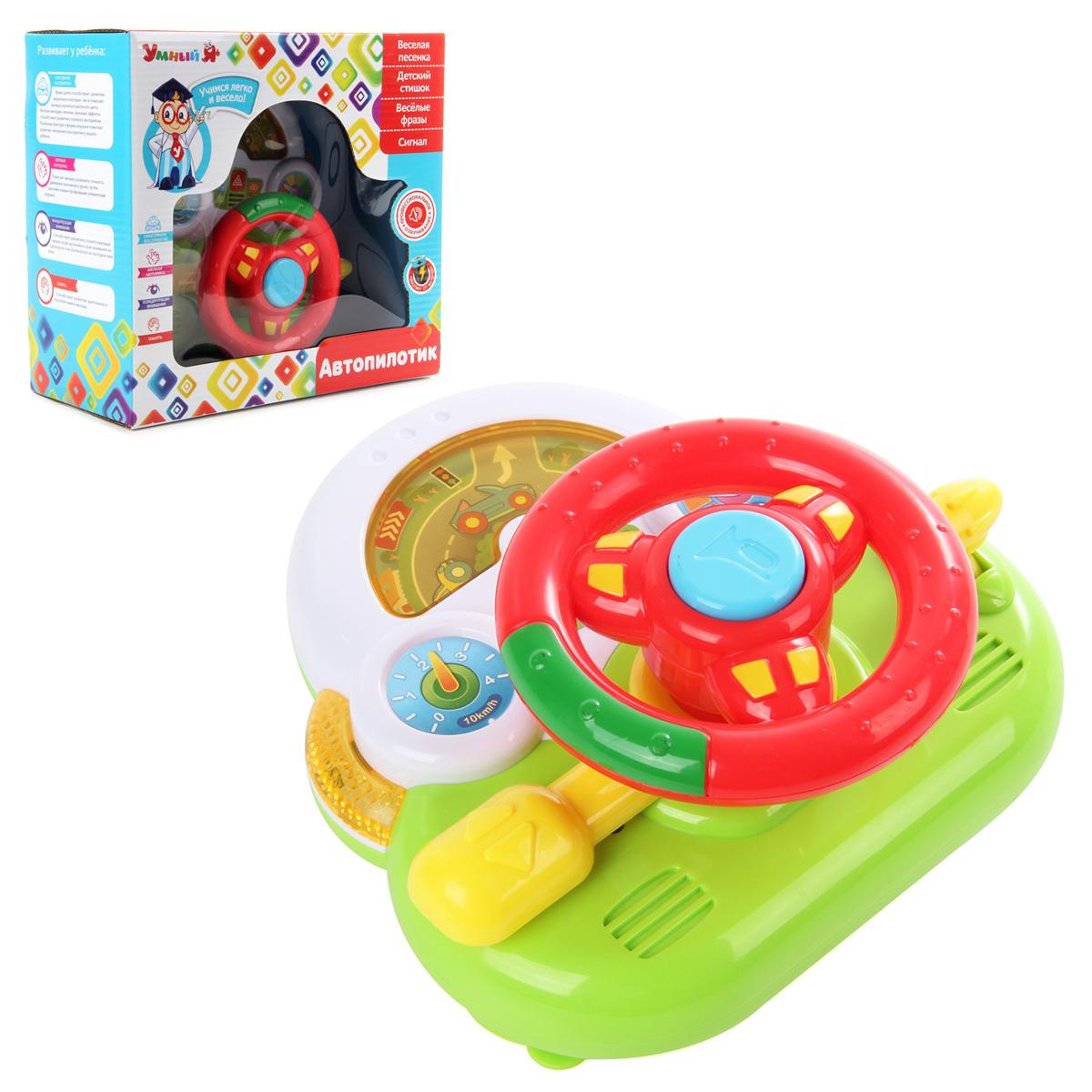 Изучаем азы вождения вместе с развивающей и очень занятной игрушкой - музыкальным рулем. С таким учителем любые уроки станут веселым приключением. У руля несколько режимов работы: - при включении раздается звук зажигающегося мотора, следует стишок о пристегивании ремня; - умеет бибикать (большая кнопка посередине); - озвучивает повороты налево и направо при сдвиге определенного рычага (при повороте направо подсвечивается правая боковая вставка игрушки, при повороте налево подсвечивается левая боковая вставка игрушки); - рассказывает стишок о правилах работы светофора (боковые вставки игрушки подсвечиваются); - поет веселую песенку (боковые вставки игрушки подсвечиваются); - руль прокручивается вручную, издавая при этом звук автомобильного гудка, изображение в прозрачном отсеке игрушки в этот момент вращается. Игрушка простая и эргономичная, удобно ложится в детские ладошки. На задней стороне игрушки есть 2 присоски, можно закрепить руль на плоской поверхности Игрушка развивает мелкую моторику рук малыша, координацию движений, зрительное и слуховое восприятие, логическое мышление, концентрацию внимания и память. Игрушка предназначена для детей до 3 лет. Озвучка русская. Игрушка работает от 2 батареек АА, не входят в комплект. Игрушка изготовлена из высококачественного и безопасного полимерного материала. Размеры руля: 16,5*9*16,5 см. Размеры коробки: 22*10,5*20 см.