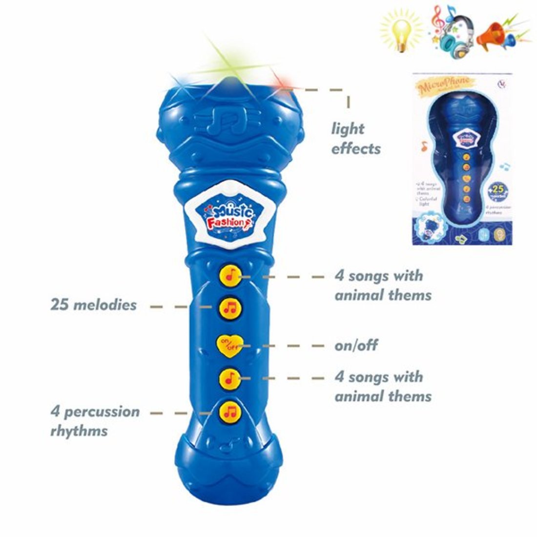 Микрофон, свет, звук, элементы питания ААА*3 не входят в комплект, коробка