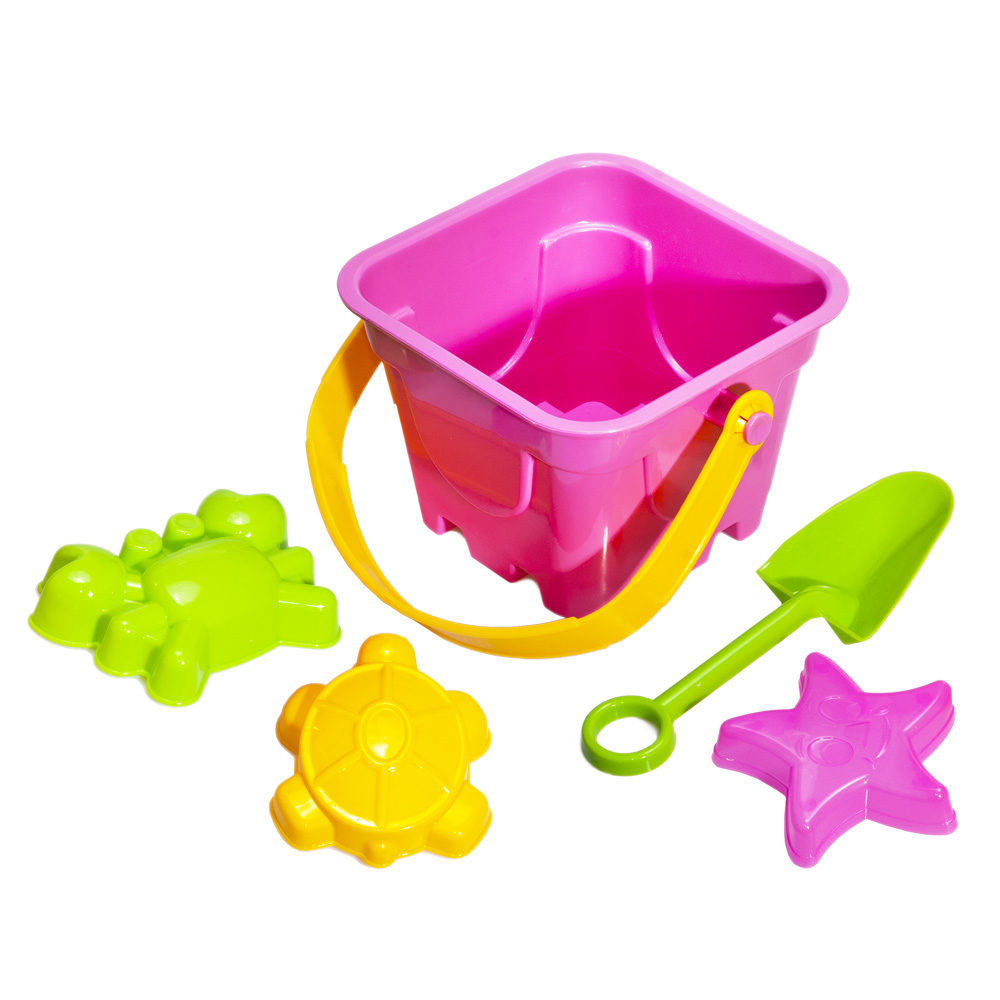 Увлекательный песочный набор, состоящий из ведерка, 3 формочек представителей морской фауны (краб, черепаха, морская звезда), совочка.