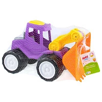Арт.15573 Песочный набор №14 (совок, грабли, 2 формочки транспорт)