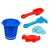 Набор для песка: ведро с крышкой, совок, грабли и 4 формочки, в сетке 13,5х13х15 см, арт.721.
