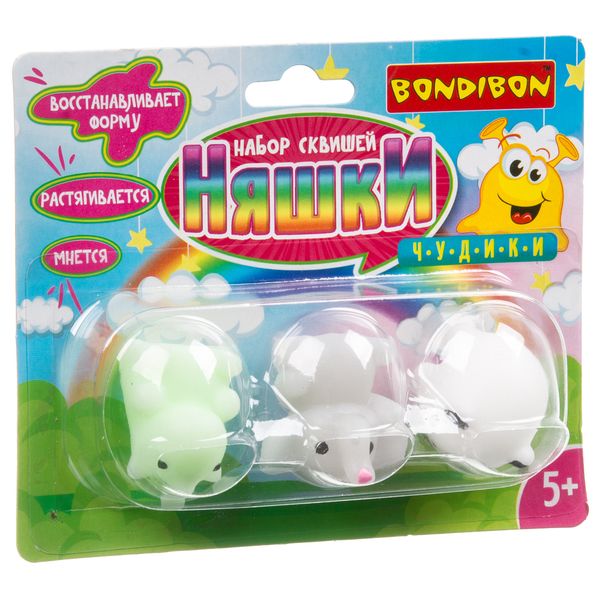 Чудики Bondibon Набор сквишей «НЯШКИ», единорог, слон, панда, BLISTER 17х7х3,5 см. ВВ3513