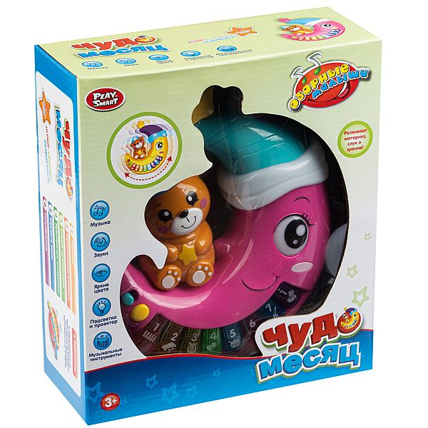 Игрушка пластиковая, обучающая Чудо месяц Play Smart, серия Озорные малыши, свет, звук, проектор, BOX22.5х9х25.5