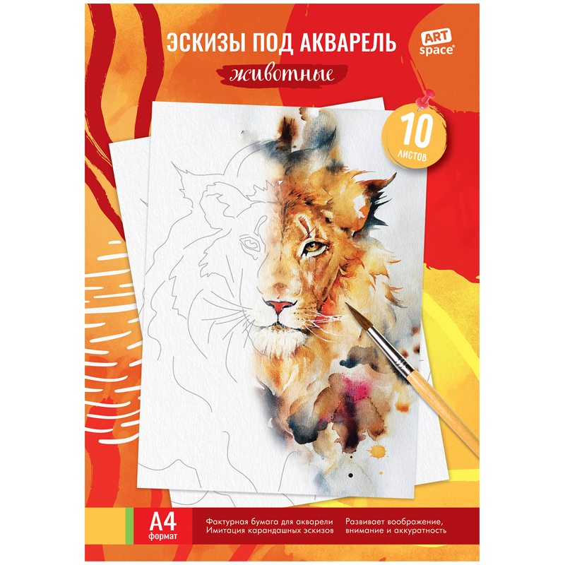 Папка для акварели с эскизом 10 л., А4 ArtSpace "Животные", 180 г/м2