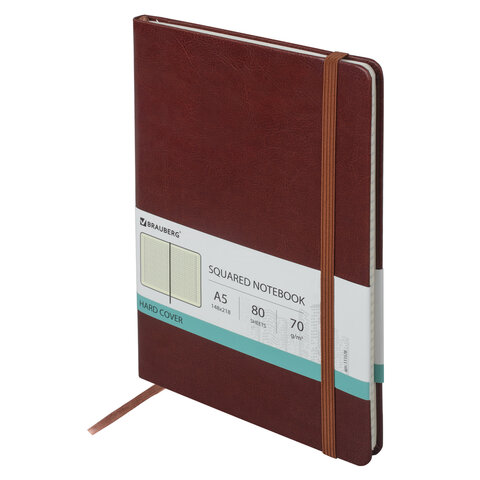 Блокнот А5 (148х218 мм), BRAUBERG "Metropolis Special", под кожу, резинка, 80 л., коричневый, 111578