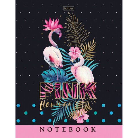 Блокнот А5 (167х216мм) 80 л., твердый, клетка, блок 5 цветов, HATBER, 3D фольга, "Фламинго", 80ББ5лофВ1